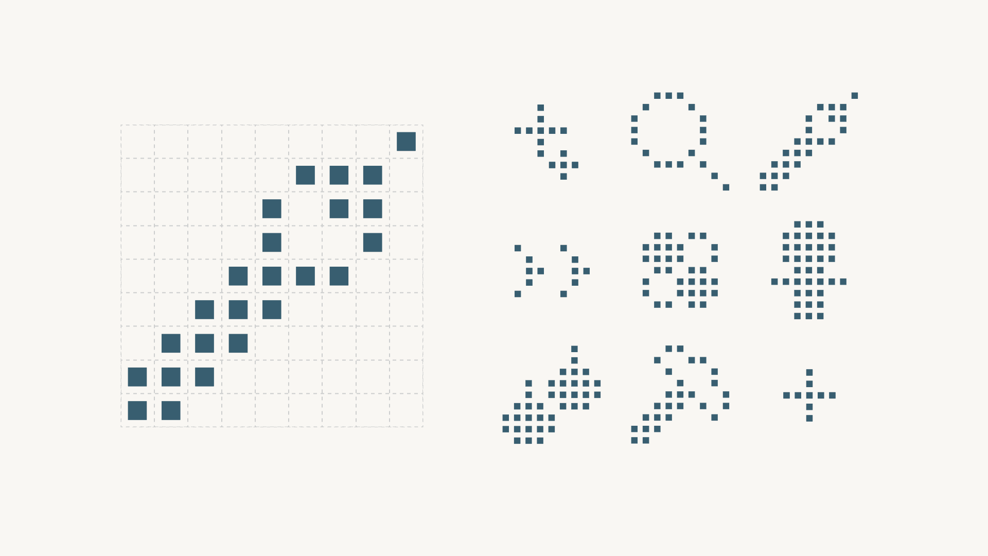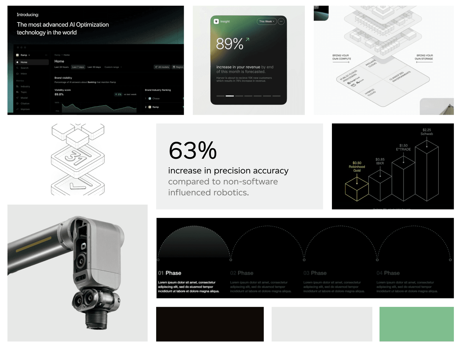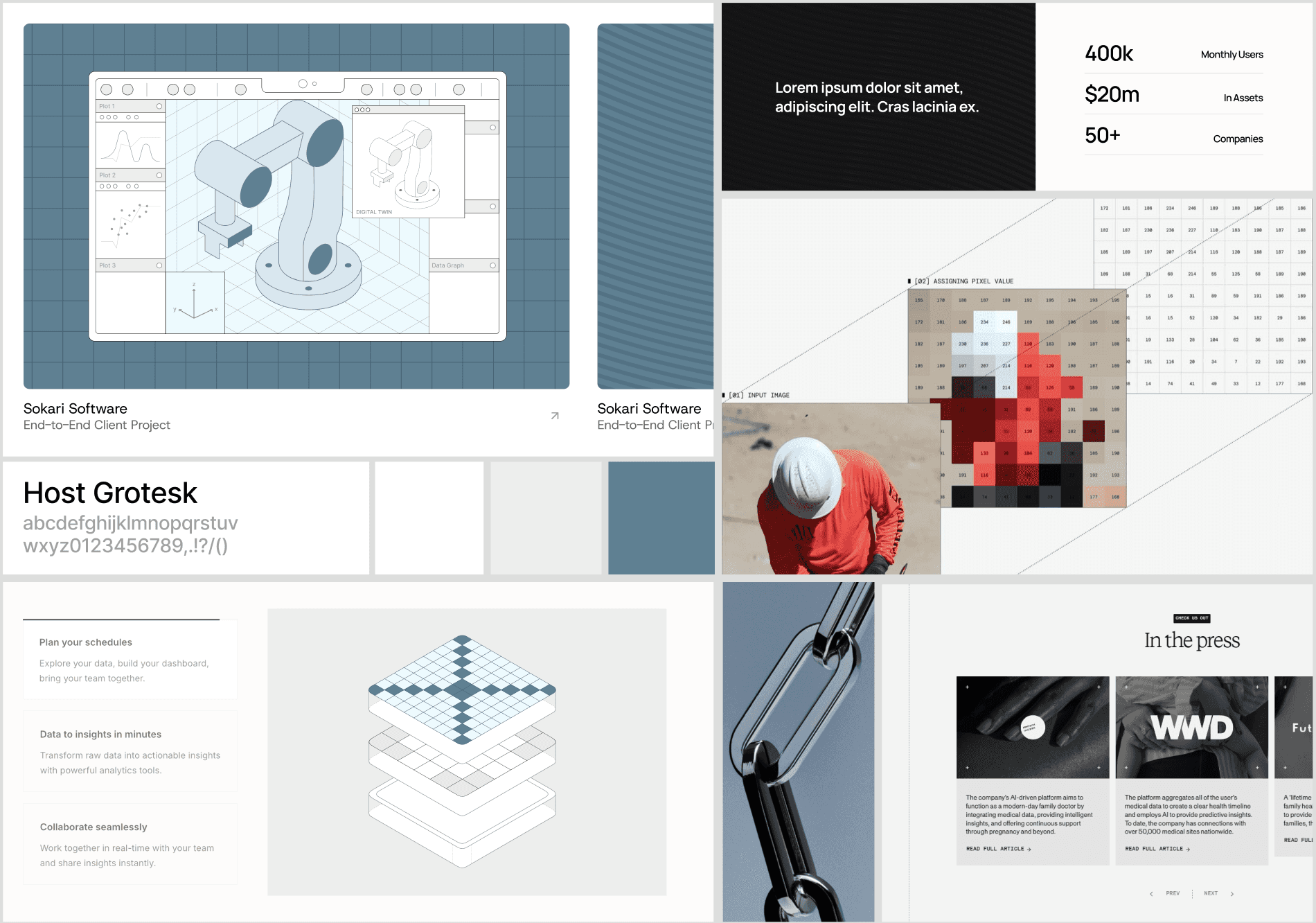 While developing our revised moodboard, we played into the idea of precision robotics and what precise meant for representing data, and therefore representing the brand. We landed on the idea of pixelation, like a pixelated photo becoming higher-fidelity, clearer, and—of course—more precise.